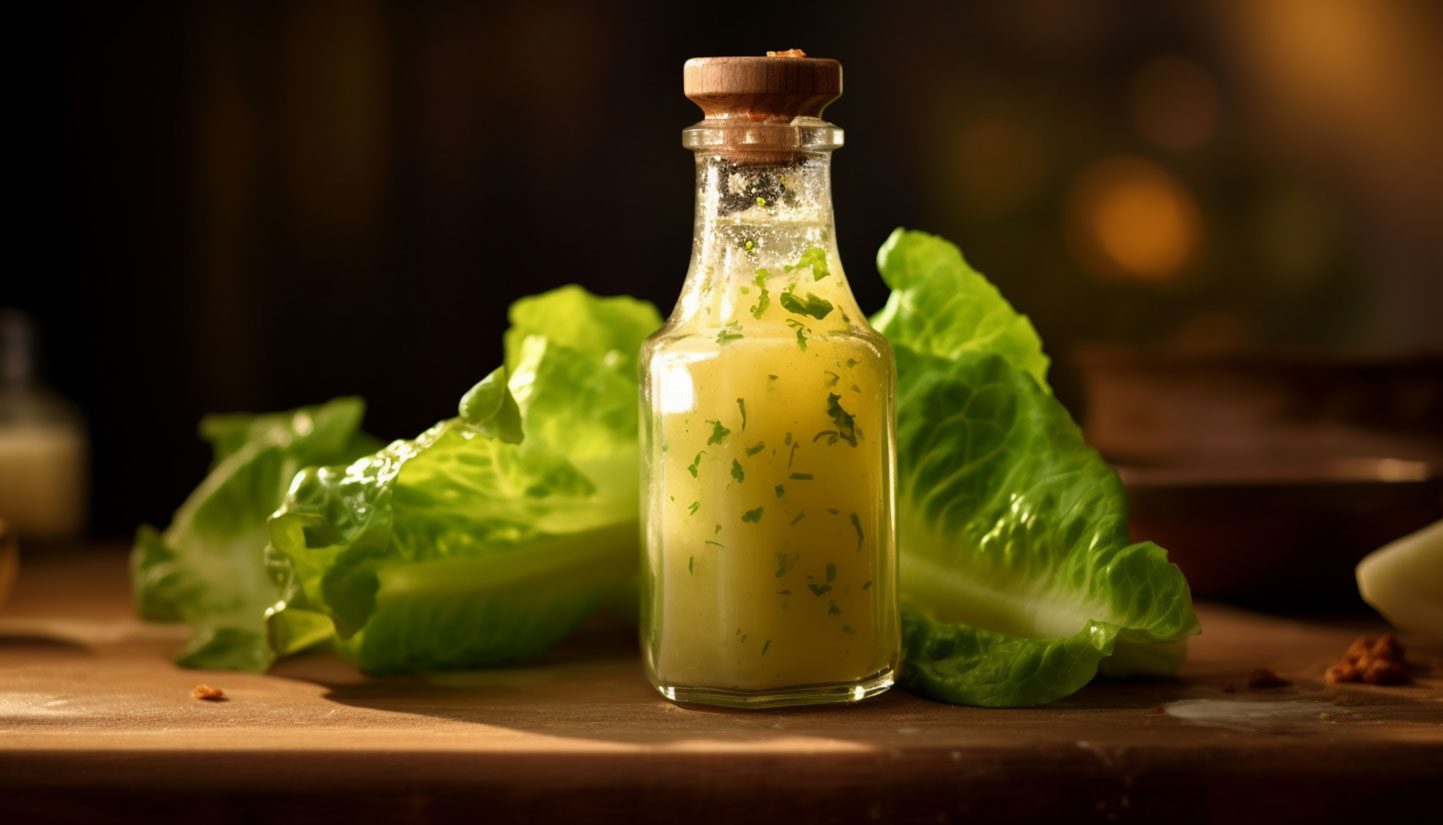Смешать оливковое масло с горчицей. Добавить оставшиеся ингредиенты и перемешать.